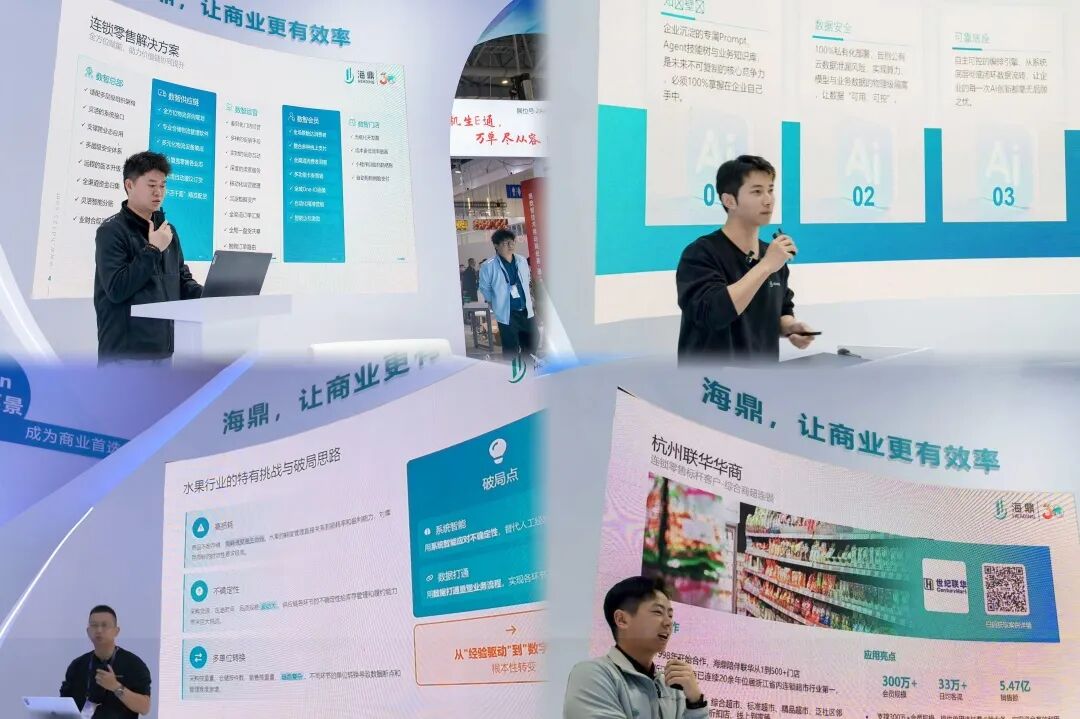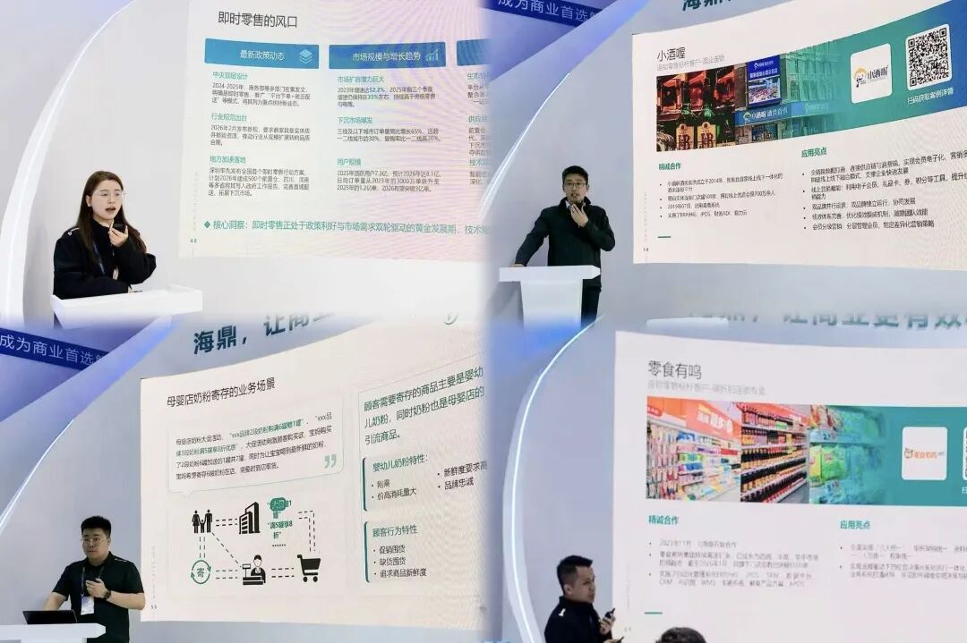 展会期间,海鼎以“从趋势到增长”为主线,于海鼎展位现场举办了10余场标杆客户案例实战分享与AI智能平台应用解析,覆盖便利、商超、生鲜水果、潮玩、母婴、酒类连锁、量贩零食、卤味、快时尚百货、即时零售等10余个细分业态,深度拆解了头部企业如何通过海鼎数智化解决方案赋能从传统经营向数智化跃迁的转型路径。