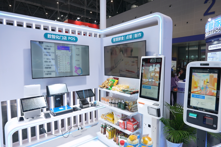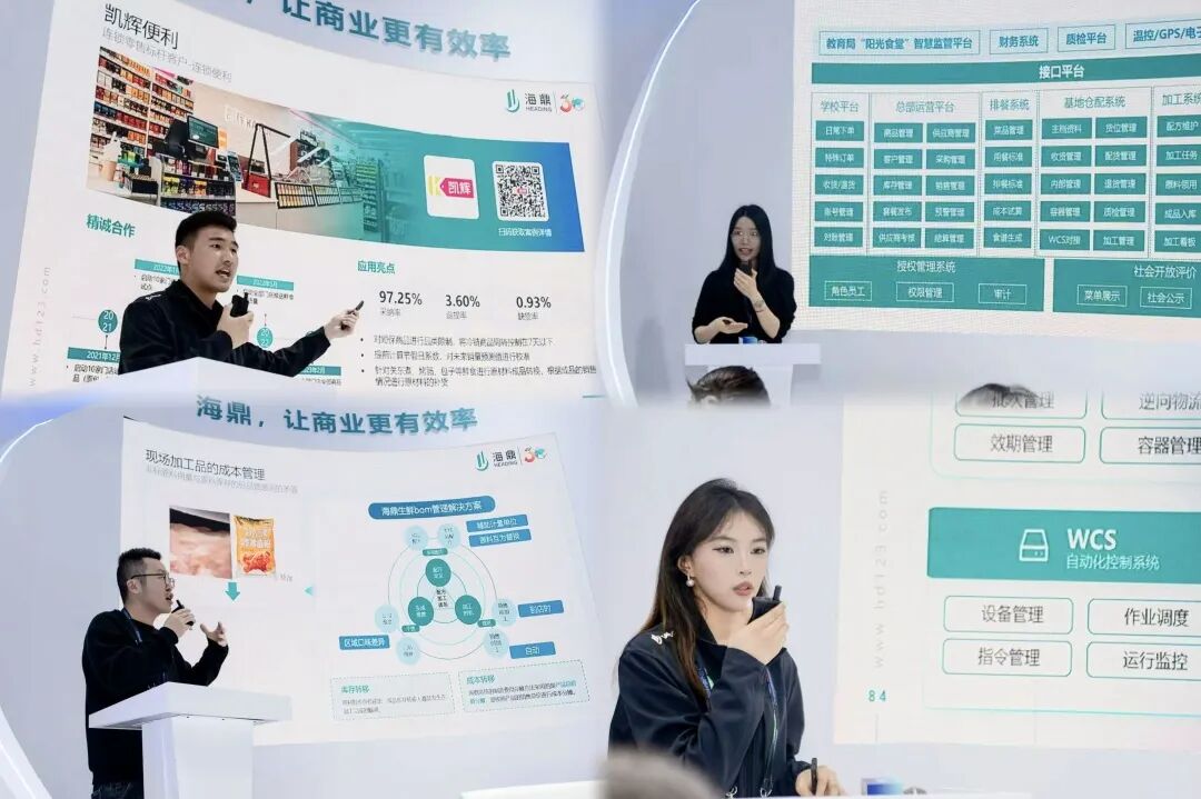 海鼎主展位以“智慧零售、智慧物流、数智化门店POS、智慧鲜食点餐/制作、海鼎AI秀”等多个主题展区为脉络,打造了一个可交流、可体验的零售空间。
