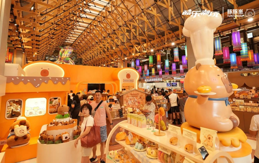 2023年10月,酷乐潮玩推出原创IP“豚豚崽”,以萌系形象为核心,快速构建起覆盖多主题的场景化消费生态。通过奶油农场联名、海洋、烘焙、新年等系列快闪活动,品牌在北上广深等50+核心城市标杆商圈打造沉浸式体验空间,单日销售额突破40万,单月峰值超500万,成为年轻消费者争相打卡的潮流地标。