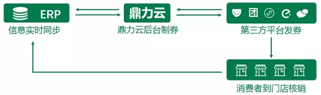 此次合作正是由海鼎全渠道平台——鼎力云提供的服务,海鼎在全渠道上的探索始于2010年,打造了多个全渠道落地方案,除了信息化系统外,鼎力云还对接第三方异业联盟,嫁接上游资源(比如银行信用卡、电商app等),这些第三方app通过与鼎力云打通,由客户在鼎力云后台制券,第三方平台发券,最终在门店核销,实现给发券上游导流,同时门店也促进销量、提高客单价的双赢效果。