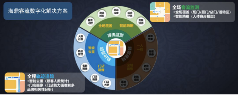 海鼎客流数字化解决方案,其核心技术能力简而言之在于三点:客流监测、轨迹跟踪和顾客建档。