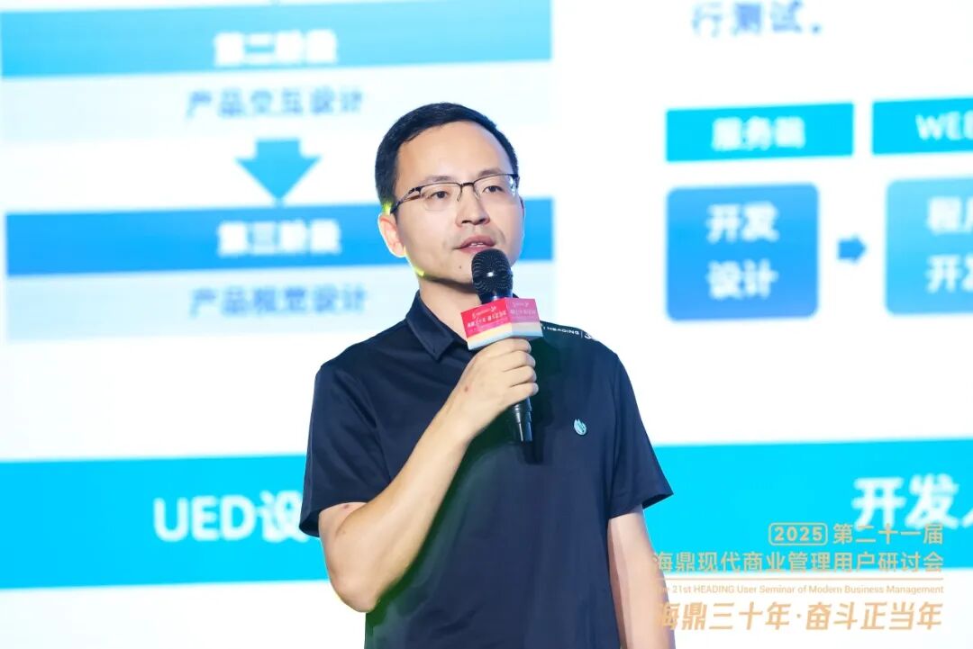 施总强调,海鼎拥有强大专业的产研团队,以高学历、高经验、高稳定性为基石,通过科学配置与高效协作,持续推动技术创新。在技术层面,海鼎注重安全与稳定,构筑企业数字化生命线,并积极探索AI应用,提升生产效率与智能化水平。产品方面,海鼎深耕商业数智化,打造数智零售与智慧物流底座,服务全球超80个国家和地区。他进一步分享了海鼎在AI方面的探索与落地,介绍了海鼎智能平台(HAI)以及基于该平台构建的智能问数、智能导购、智能检查等AI产品,彰显了AI在提升业务效率与用户体验方面的巨大潜力。