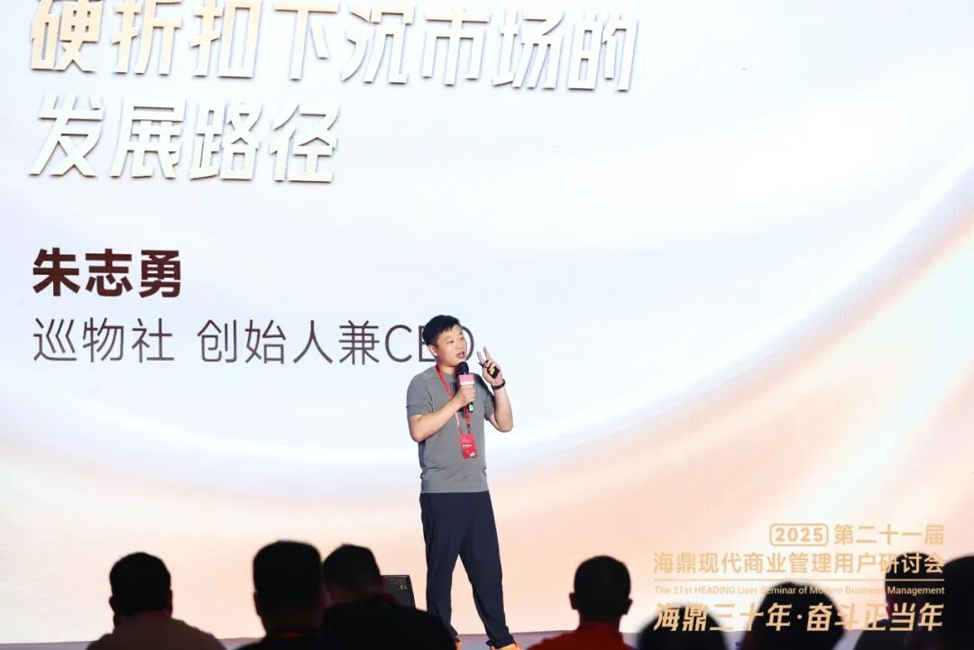 朱总首先回顾了巡物社的发展历程,而后凭借自身多年在行业内的深耕与深刻洞察,指出中国折扣零售市场正呈现爆发式增长。他认为下沉市场开展硬折扣零售占尽“天时、地利、人和”,契合当下消费者对大牌平替的需求,是流量蓝海且受年轻群体青睐。基于这样的市场形势,巡物社针对不同群体量身定制了发展路径:为新手提供保姆式一键开店服务,以新模式赋能传统超市转型,助力经销商成为区域连锁王,全方位推动下沉市场硬折扣发展。