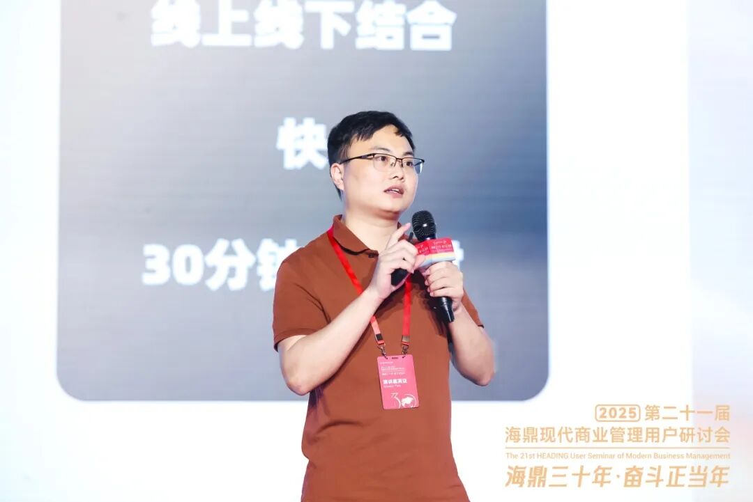 江总深入分享了货郎先生的发展路径与数字化实践。他提到,货郎先生凭借27年行业深耕,完成从区域性批发商到全国连锁品牌的转型。依托自建的75000㎡智慧产业园、千万活跃会员以及超千家门店,在数字化浪潮中,货郎先生携手海鼎进行转型升级,引入AI销量预测,优化补货策略,并通过动态定价、季节性商品开发等策略驱动运营,同时,深化全渠道订单支持,升级小程序功能,打通线上线下,强化社交媒体口碑裂变。未来,货郎先生将与海鼎深化合作,实现智能商品补货、实时运营数据监控和智慧会员运营等,从而构建全产业链优势,共创零售新篇章。