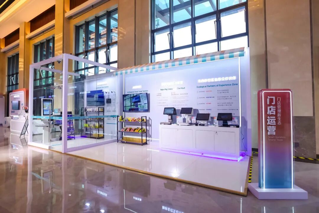 海鼎联合隆玛特、商米、快进商店、辰达物联、中科英泰和易捷通科技等一众优秀合作伙伴,精心打造了生态体验区。该区域通过软硬件深度融合的展示方式,生动呈现了数智化领域的尖端产品与解决方案。海鼎鲜食点餐、制作、无人值守、AI秤、刷掌支付、AI智能补货、AI智能巡检、AI零售智能平台等产品等悉数亮相,为与会者带来了前所未有的场景化、沉浸式体验。