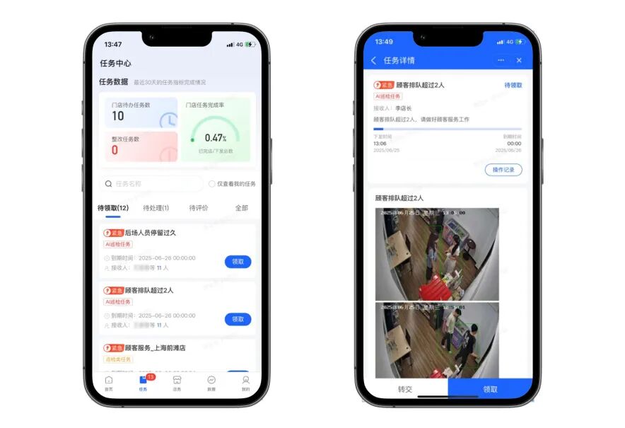 对于重复性巡查的工作内容,海鼎智能巡检方案通过AI技术实现了实时侦测与异常识别。一旦识别到异常情况,系统将自动生成门店整改任务并通知总部督促跟进。这一功能不仅大大提高了巡检效率,还释放了督导人员的人力,使他们能够专注于更重要的管理任务。同时,系统记录的整改任务和完成情况为门店考核提供了量化依据。